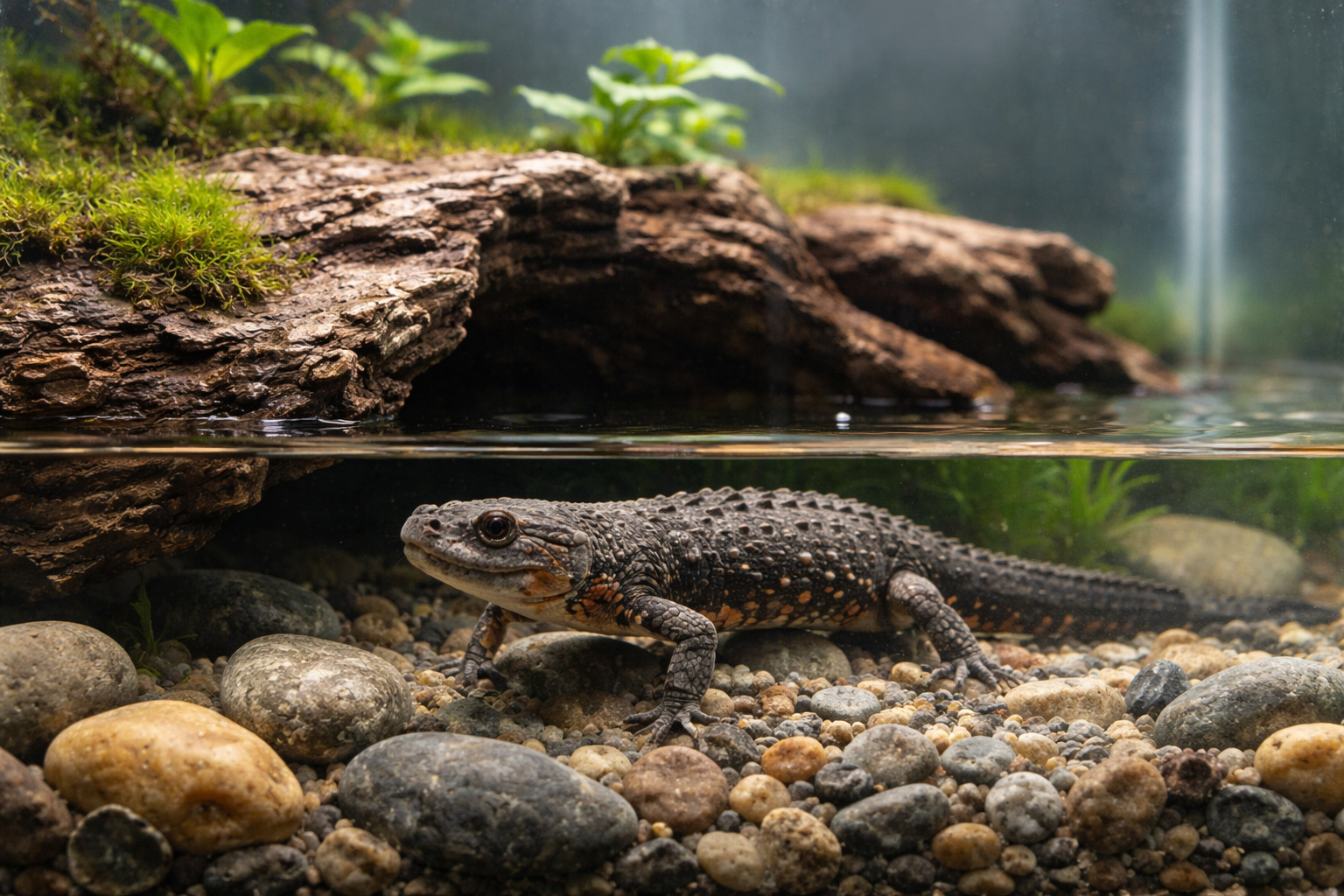 イボイモリ飼育では、水場と陸場の両方を用意することが基本になります。