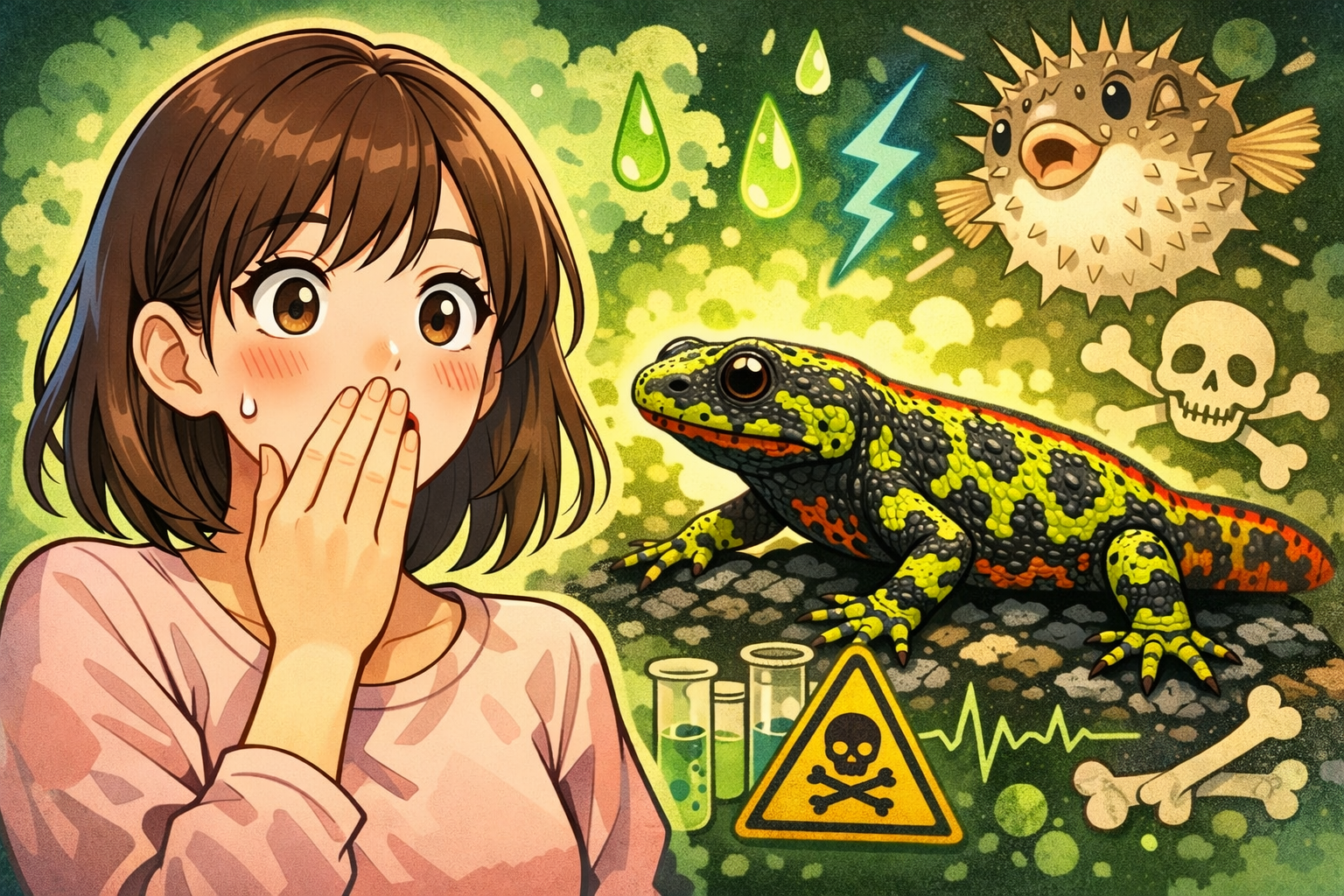 環境や食性を通じて毒を蓄積する仕組みは、フグなど他の動物でも共通して見られます。