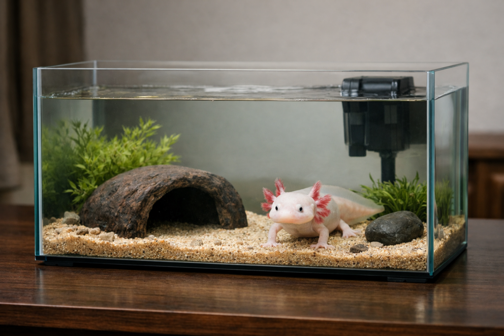 ウーパールーパーは完全水棲で、水槽飼育が基本です。